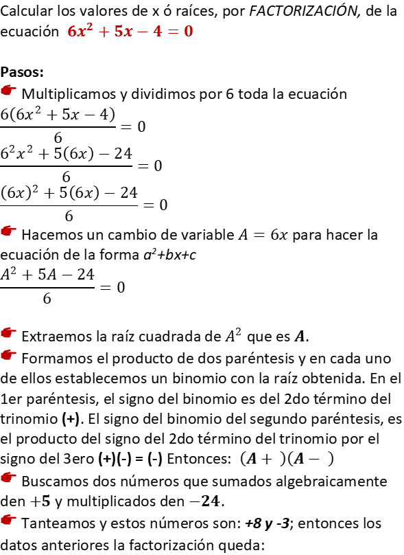 👉👉 Pasos a seguir en la resolución de ecuaciones de segundo grado de la forma x2+bx+c = 0 y ax2+bx+c = 0 por factorización👈👈