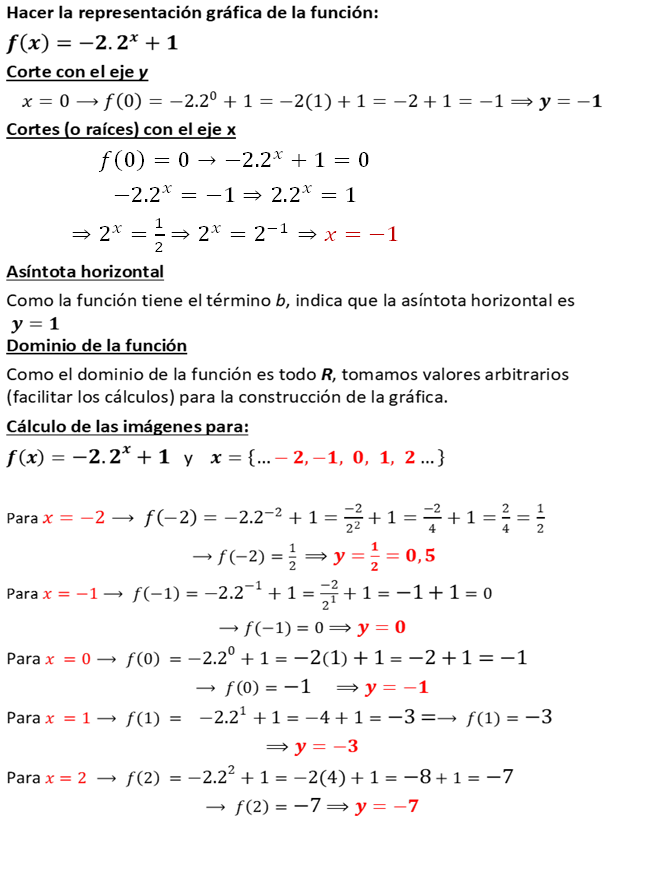 Ejemplos de representación gráfica de funciones exponenciales paso a paso.